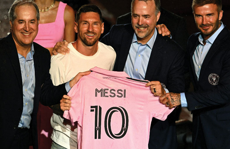 بدأ نادي انتر ميامي الأمريكي العد التنازلي للحظة الظهور الأول لنجم كرة القدم الأرجنتيني الدولي ليونيل ميسي مع فريقه الجديد في المباريات خلال الأيام القليلة المقبلة. وقدم انتر ميامي نجمه الجديد ميسي إلى الجماهير في فعالية خاصة على استاد "بينك"، جرى بثها على الهواء مباشرة، وشهدت معانقة ميسي "36 عاما" لمالك النادي نجم كرة القدم الإنجليزي السابق ديفيد بيكهام قبل أن يتسلم ميسي قميصه مع الفريق، والذي يحمل رقم "10". ووجه ميسي كلمة إلى الجماهير أكد فيها شكره للجميع على هذا الترحاب الهائل في ميامي، وأكد أنه متحمس للغاية تجاه هذه التجربة الجديدة مع النادي الأمريكي.