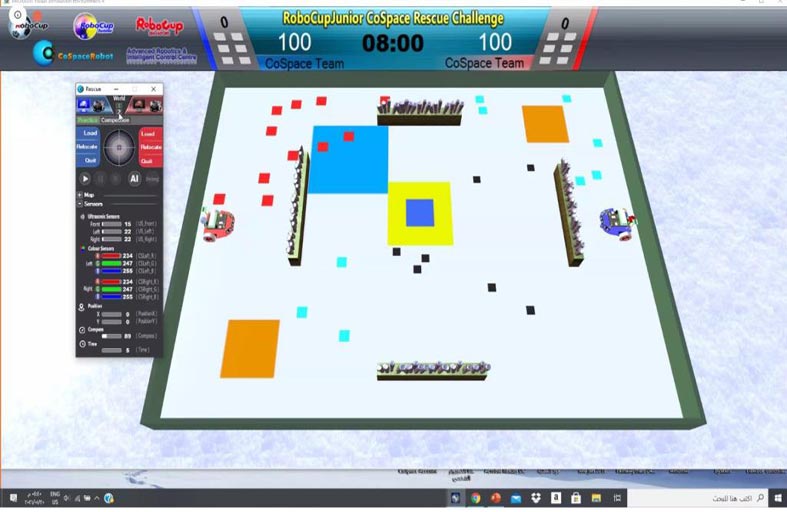 ويحمل البرنامج الثاني الذي يقدمه أحمد مطر منشط علوم وتكنولوجيا في ناشئة الشارقة، عنوان "روبوكب سميوليشن"، وتعلم المشاركون من خلاله كيفية تفعيل البرنامج على أجهزة الحاسوب بطريقة قانونية، والتعرف إلى واجهة البرنامج، إضافة إلى التدريب على برمجة الروبوت باستخدام اللغة C++. ويمثل هذا البرنامج محاكاة للواقع من خلال برمجة الروبوت لاستخدامه في إدارة الأزمات والكوارث والقيام بعمليات الإنقاذ في الأماكن الخطرة، عبر برمجة الحساسات مثل حساس اللون "color sensors"، وحساس قياس المسافة " التراسونيك - Ultrasonic sensors" لاكتشاف العوائق واجتيازها للوصول إلى مكان آمن.