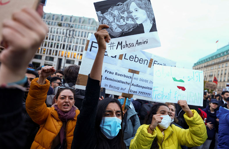 وتشهد مدن كبرى في إيران تظاهرات قتل فيها العشرات، منذ وفاة الشابة مهسا أميني (22 عاما) في 16 أغسطس(أيلول) أثناء توقيفها لدى شرطة الأخلاق لعدم امتثالها بقواعد اللباس الصارمة في الجمهورية الإسلامية.