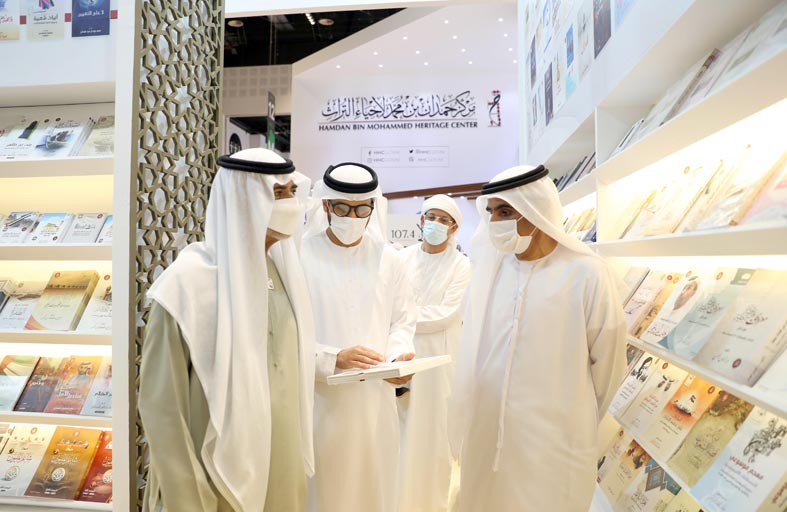 نهيان بن مبارك يزور جناح أكاديمية الشعر بمعرض أبوظبي للكتاب