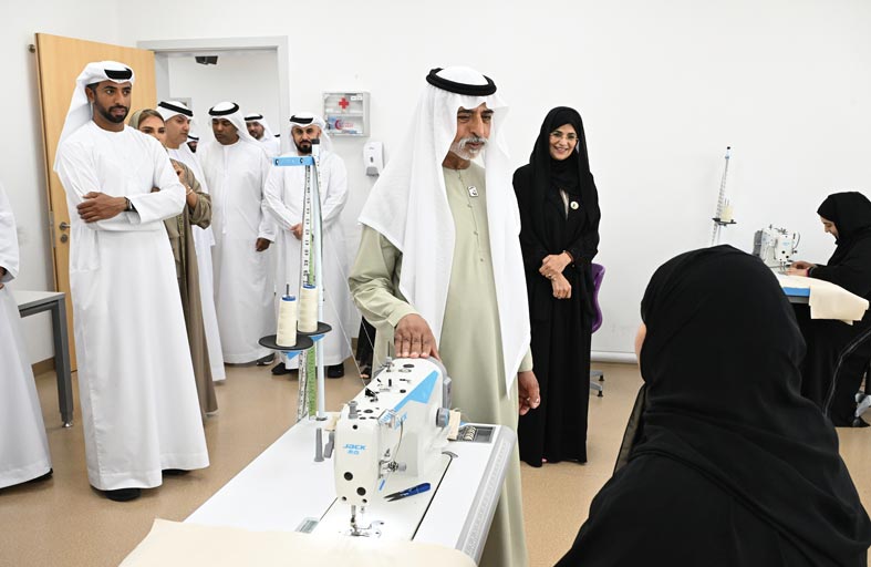 وتفقَّد معالي الشيخ نهيان بن مبارك آل نهيان، خلال الزيارة، ورش الخياطة للبنات والأولاد التي تُعدُّ من المشاريع الرائدة التي توفِّر فرص عمل لأصحاب الهمم، من خلال تطوير مسارات التأهيل بما يتناسب مع متطلبات سوق العمل. وشهِدَ معاليه عرضاً لخدمات الطباعة التي تعمل وتُدار من قِبَل فريق من أصحاب الهمم، لتصنيع منتجات تشمل دفاتر الملاحظات والقمصان والأكواب.