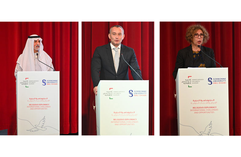 بحضور معالي الشيخ نهيان بن مبارك آل نهيان، وزير التسامح والتعايش في دولة الإمارات، نظمت جامعة السوربون أبوظبي وأكاديمية أنور قرقاش الدبلوماسية، المركز الإماراتي الرائد والمختص في تنمية القدرات والكفاءات الدبلوماسية، مؤتمر "الدبلوماسية الدينية: الفرص والتحديات الدولية" الذي عقد في مسرح زايد، حرم جامعة السوربون أبوظبي.