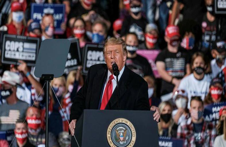 في ويسكونسن وبنسلفانيا وميشيغان، يتقدّم عليه منافسه الديمقراطي جو بايدن حاليًا بنسبة 6 إلى 8 بالمائة في نوايا التصويت، وفق معدلات موقع التوقّع فايف ثيرتي ايت.
