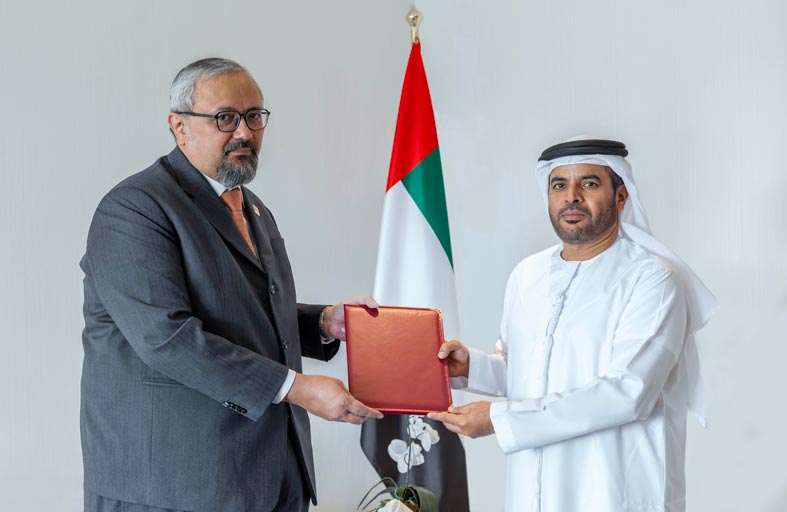 تسلم سعادة سيف عبدالله الشامسي، وكيل وزارة مساعد لشؤون المراسم في وزارة الخارجية، نسخة من أوراق اعتماد سعادة داتو تنغكو سراج الزمان بن تنغكو محمد عاريفين، السفير الجديد لماليزيا لدى الدولة.
