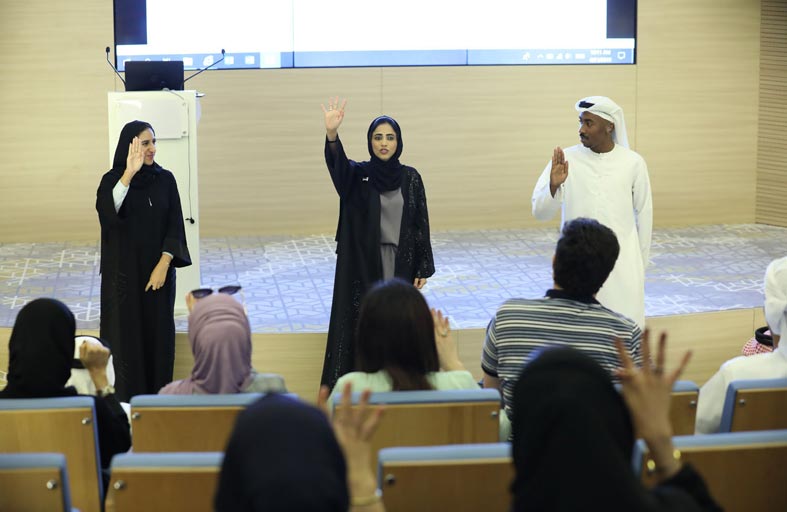وأكد أن الاحتفال بمناسبة اليوم الدولي للغة الإشارة يجدد التزام الوزارة بتعزيز جهود توظيف أصحاب الهمم انطلاقا من سعيها للبناء المستدام على محاور السياسة الوطنية لتمكين أصحاب الهمم لا سيما في التأهيل المهني والتشغيل وإمكانية الوصول والحماية والتمكين والحياة العامة والثقافة بما يحقق التمكين والتشغيل الدامج لهذه الفئة ...مشيرا إلى أن الوزارة كانت قد أهلت في وقت سابق موظفي الواجهة الأمامية في مراكز سعادة المتعاملين بلغة الإشارة وإتيكيت التعامل مع أصحاب الهمم ومنحتهم إجازة معنوية كموظفين مؤهلين للتعامل والتواصل مع أصحاب الهمم.