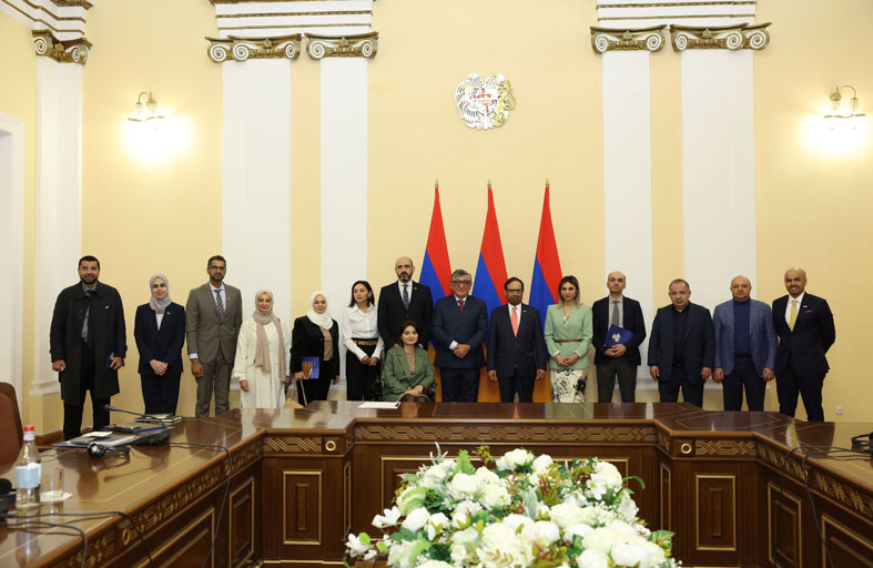 شارك في جلسة المباحثات وفد المجلس الوطني الاتحادي الذي يضم سعادة كل من: سارة محمد فلكناز، ومحمد عيسى الكشف، ومروان عبيد المهيري، وأحمد مير هاشم خوري، والدكتورة سدرة راشد المنصوري، أعضاء المجلس، وعفراء راشد البسطي ، الأمين العام المساعد للاتصال البرلماني، وذلك بحضور سعادة الدكتورة ناريمان الملا سفيرة الدولة لدى جمهورية أرمينيا.