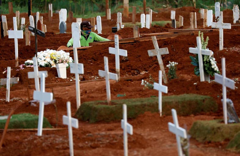 ووفقا لحسابات رويترز التي استندت إلى بيانات من الأسبوعين الماضيين يتوفى 5900 شخص في المتوسط كل أربع وعشرين ساعة نتيجة الإصابة بمرض كوفيد-19.