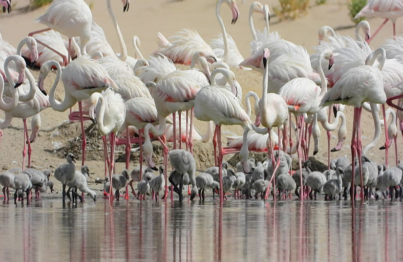 ولادة 876 فرخا لطائر الفلامنجو في محمية الوثبة للأراضي الرطبة خلال الموسم الحالي