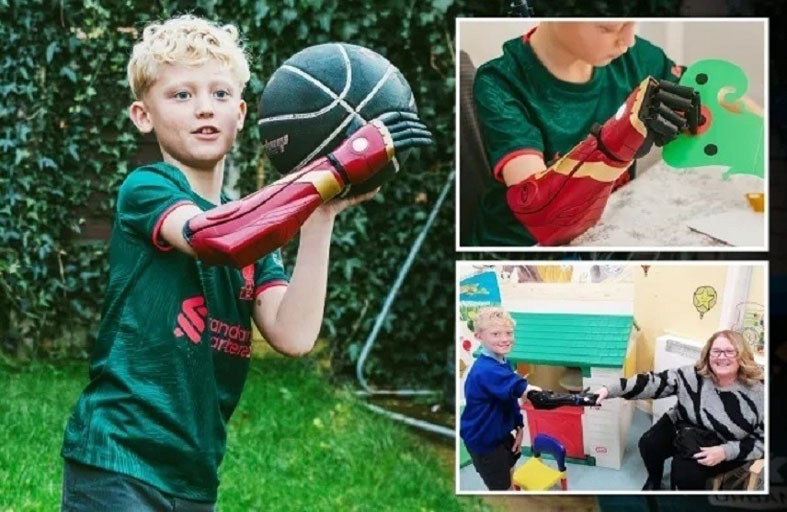 حصل طفل بريطاني ولد بدون ذراعه اليمنى على طرف إلكتروني، ويمكنه الآن أداء العديد من المهام التي كان عاجزاً عنها في السابق.