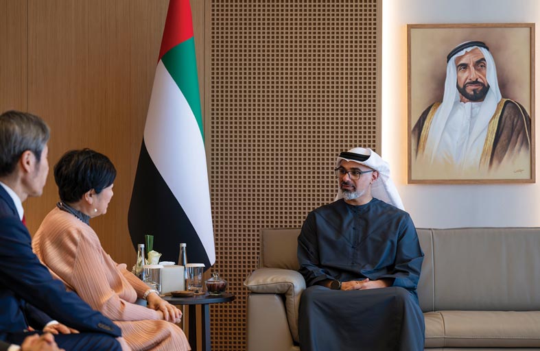 وجرى، خلال اللقاء، بحث سُبل تعزيز العلاقات الثنائية بين البلدين والتعاون المشترك بين العاصمتين أبوظبي وطوكيو في مختلف القطاعات ذات الاهتمام المشترك. حضر اللقاء معالي سيف سعيد غباش، الأمين العام للمجلس التنفيذي لإمارة أبوظبي، وسعادة شهاب أحمد الفهيم، سفير الدولة لدى اليابان، والوفد المرافق.