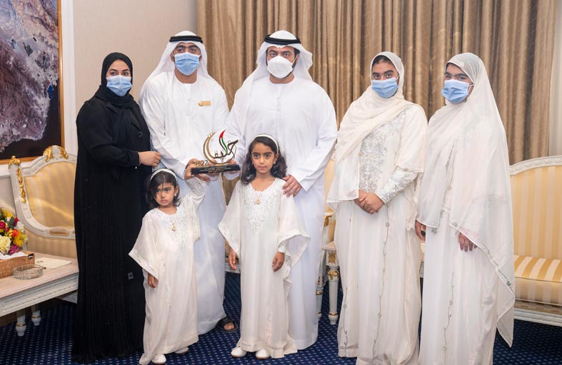 ولي عهد الفجيرة يستقبل أسرة أحمد علي الكعبي الفائزة بجائزة الأسرة الإماراتية المتميزة