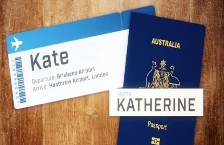 وبينما كان الزوجان يسافران من بريسبان إلى ملبورن على متن خطوط فيرجن للطيران، لاحظت موظفة المطار، أن الاسم الموجود على تذكرة طائرة كيت لا يتطابق مع الاسم الموجود في جواز سفرها، وأبلغتها أنها لن تتمكن من الصعود إلى الطائرة دون إصلاح الخطأ.