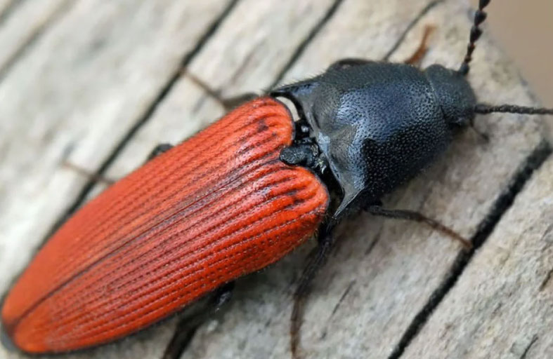تستخدم خنفساء فرقع لوز حيلة التظاهر بالموت للدفاع عن نفسها، فهي تسقط على الأرض وتظل مستلقية على ظهرها بلا حراك لعدة ثواني، وفجأة تثب وثبة سريعة عالية في الهواء، في محاولة للابتعاد عن الخطر.