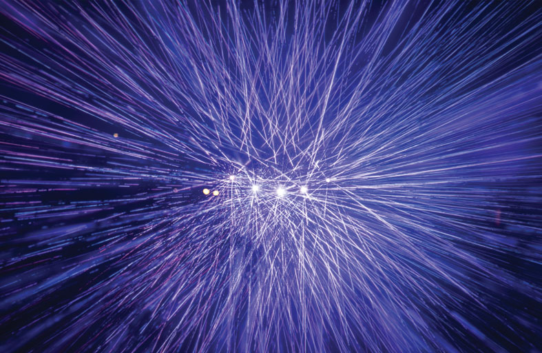 عند النظر في ما تلتقطه عدسات الكاميرات لحظات تصادم الجسيمات في مصادم الهادرونات الكبير، نرى رشقات كثيفة من الجسيمات تتطاير في كل اتجاه، وكأننا أمام انفجار ناري هائل غير محكوم بأي قواعد أو نظام.