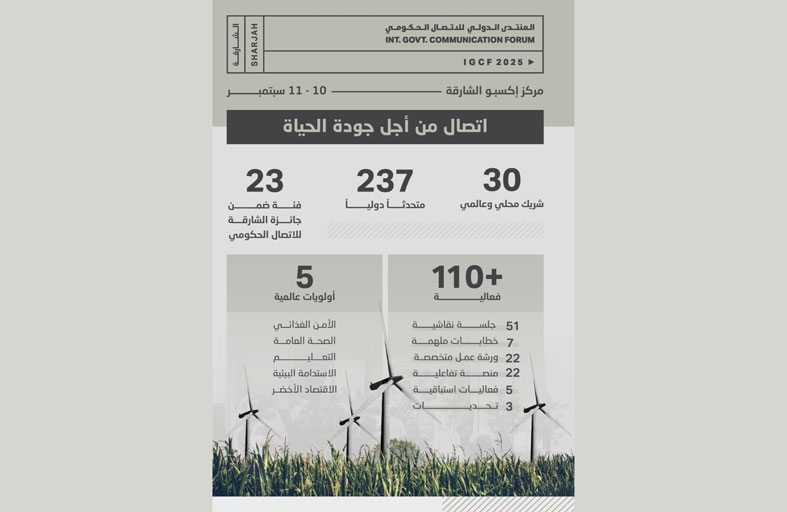 وقال سعادة طارق سعيد علاي المدير العام للمكتب الإعلامي لحكومة الشارقة إن المنتدى الدولي للاتصال الحكومي يؤمن بأن الاتصال جزء رئيسي لحل التحديات العالمية خاصة في ظل تشابكات قضايا المناخ والصحة والفقر والجوع والتعليم والاستدامة وغيرها وهو ما يضع على عاتق الاتصال دوراً مضاعفاً في نقل الحقائق والمعلومات وتمكين المجتمعات من المشاركة الواعية وصياغة حلول مبتكرة للتحديات المشتركة ما يجعله أداة استراتيجية لإدارة التحولات العميقة التي يشهدها العالم.