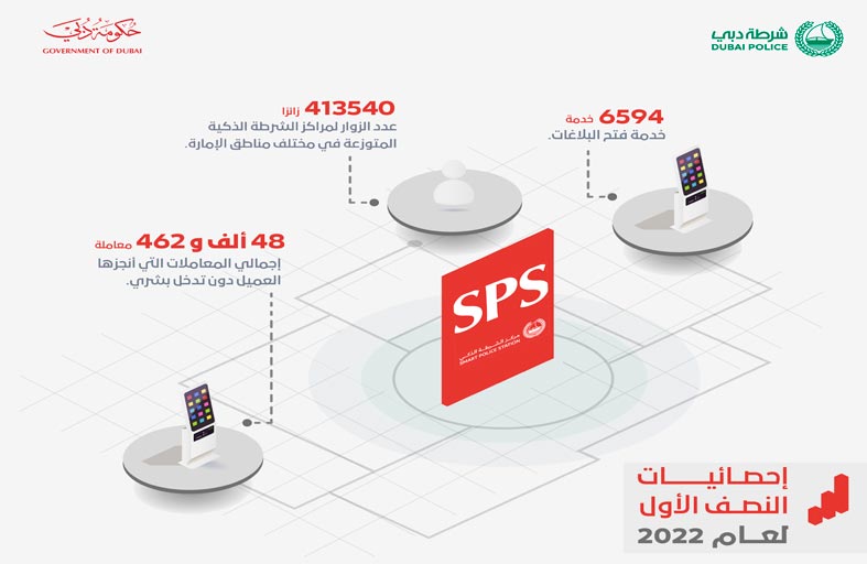 كشفت القيادة العامة لشرطة دبي عن إحصائيات المعاملات الذكية التي أنُجزت في النصف الأول من العام 2022 عبر مراكز الشرطة الذكية SPS، والتي بلغ عددها 48 ألفاً و462 معاملة ذكية، أنجزها متعاملو شرطة دبي دون تدخل بشري، منها 6594 معاملة خدمة فتح البلاغات، في حين بلغ عدد الزوار لهذه المراكز البالغ عددها 29 مركزاً ذكياً متوزعة في مختلف مناطق إمارة دبي بما فيها مراكز الشرطة ونقاط الضواحي، بلغ 413 ألفاً و540 زائراً.