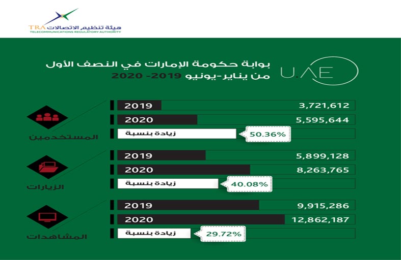بلغ عدد مستخدمي البوابة الرسمية لحكومة دولة الإمارات "U.AE" ما يربو على خمسة ملايين ونصف خلال النصف الأول لعام 2020 ما يمثل زيادة بنسبة 50% عن عام 2019. وقد بلغ عدد زيارات صفحات البوابة قرابة ثمانية ملايين زيارة، فيما تجاوز عدد مشاهدات صفحاتها 12 مليونا ونصف المليون مشاهدة.